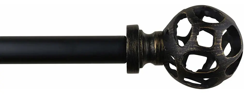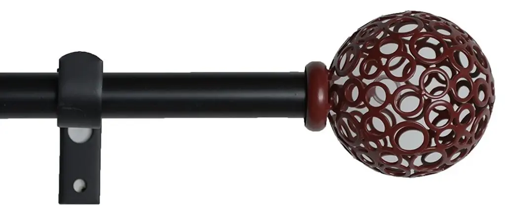 Bring a designer''s touch to your window treatments with the planet ball finial Rod Set.Steel adjustable rod, Outer rod measures 3/4" diameter, inner rod measures 5/8" diameter.Finial size: 2 1/4" diameter, 2 1/2" length.Mounting hardware included: standard matching brackets that extend from 4" to 5.5" deep.Two brackets come with 28"-48" set, three brackets come with both 48"-84" and 84"-120".Adjustable brackets measure 5" to 6 3/4" long, 4 1/2" to center of bracket cup; 1 3/4" wall mount span. 2 brackets included with 28"-48"; 3 brackets included with 48"-84" and 84"-120" lengths.