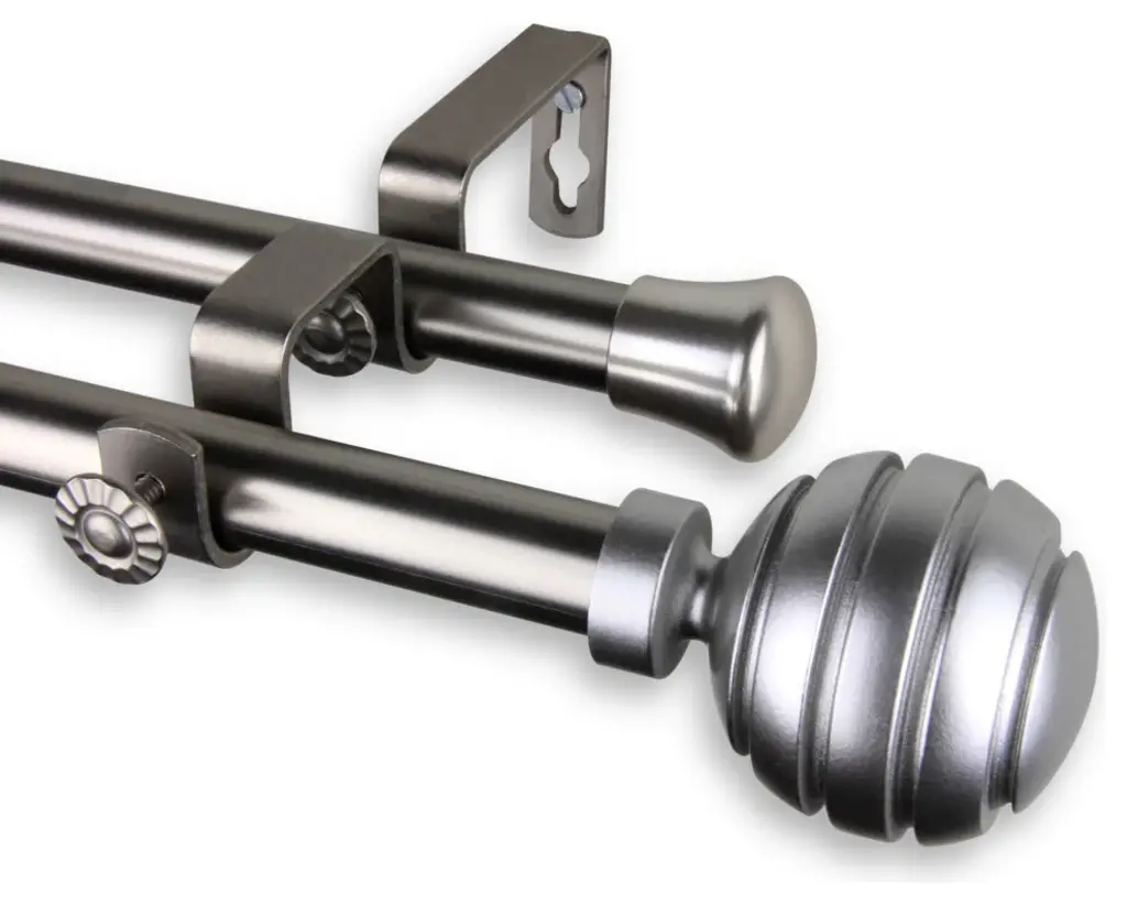 Poise 13/16" Bay Window Double Curtain Rod, Satin Nickel