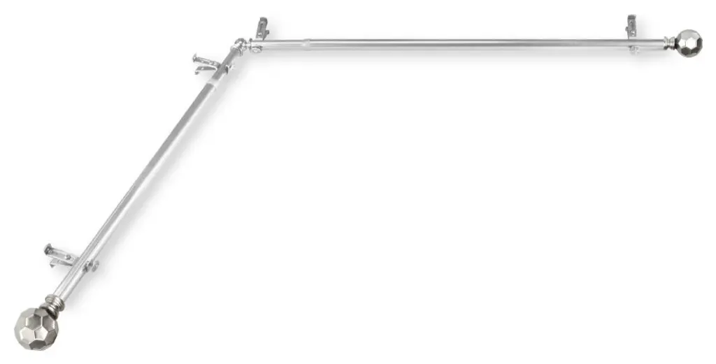 Easily and effortlessly decorate your corner windows with curtains and sheers/valences. 2 sets of two 13/16 in. curtain rods attach via corner ball connector that allows for nearly 360 of rotation. These high quality steel rods are accented with decorative finial end pieces.Includes: four 13/16 inch diameter rods, finials, corner connectors, and mounting hardware.Front rod projection: 6.375 in. back rod projection: 3.75 in.Finial Measurement: 2-3/4 inch W X 2-1/8 inch H x 2-1/8 inch DSteel Rod and Resin FinialInstallation instructions included
