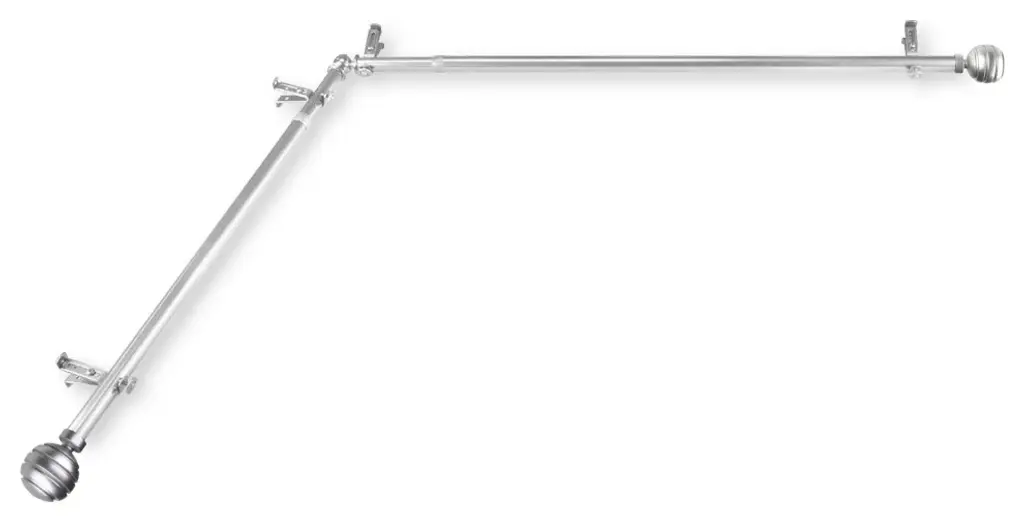Easily and effortlessly decorate your corner windows with curtains. 1 set of two 13/16 inch diameter curtain rods attach via corner ball connector that allows for nearly 360 of rotation. These high quality steel rods are accented with decorative finial end pieces.Includes: two 13/16 inch diameter rods, 2 finials, 1 corner connectors, and mounting hardware.Finial Measurement: 2-3/4 inch W X 2-1/8 inch H x 2-1/8 inch DBracket Projection: 2.875 inchInstallation instructions includedSteel Rod and Resin Finial