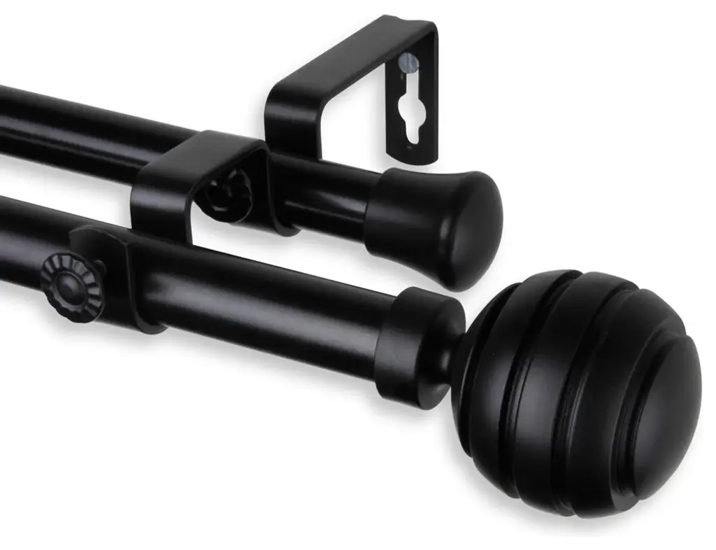 Poise 3/4" Double Curtain Rod 120-170", Black
