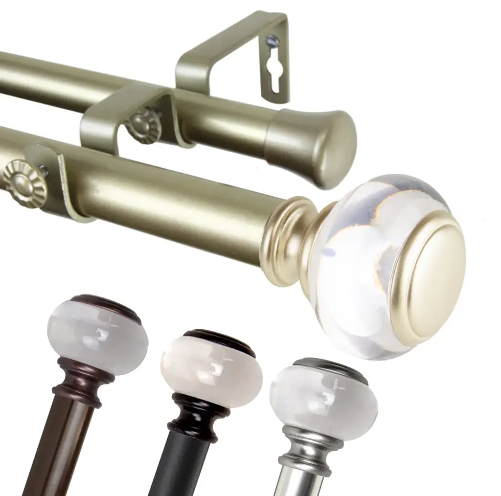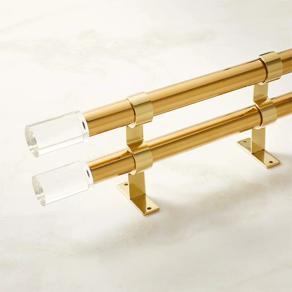 Porter Polished Brass Double Curtain Rod with Acyrlic Finial 28"-48"x1.25"