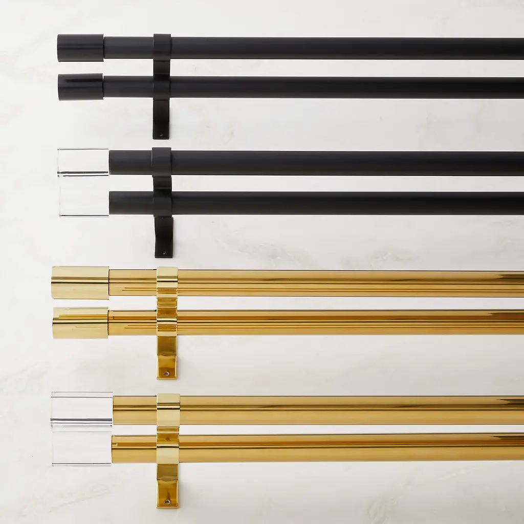 Stainless steel tube goes the distance to display curtains. Adjustable curtain rod telescopes in/out for an exact fit. Proof that details really do make all the difference. CB2 exclusive.