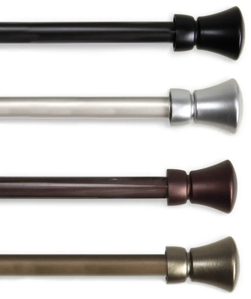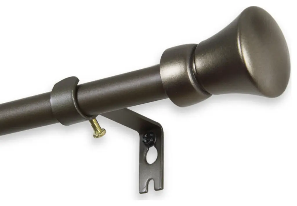 Central Design Products presents the perfect enhancement to your window treatment with high-end quality 5/8" Curtain Rods, Reagan edition. Effortlessly style your window treatment with these Curtain Rods. Designed to add a modern touch to your window decor. Includes 1 curtain rod of 5/8" diameter, 2 support brackets, 2 finials, and mounting hardware. Rod Size: 28-48" Projection: 2.75" Clearance: 2" Material: Steel Color: Antique Gold More color and sizes available, sold separately.