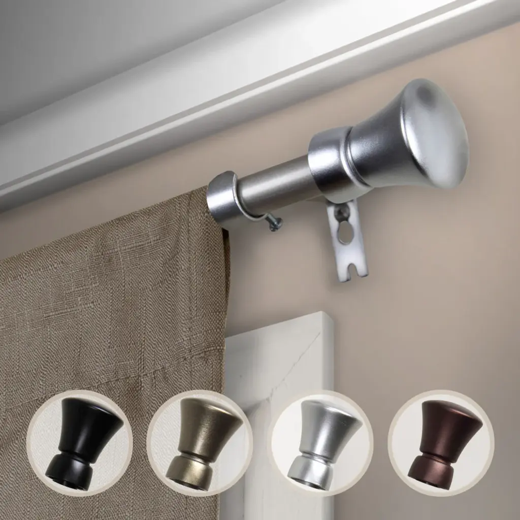 Central Design Products presents the perfect enhancement to your window treatment with high-end quality 5/8" Curtain Rods, Reagan edition. Effortlessly style your window treatment with these Curtain Rods. Designed to add a modern touch to your window decor. Includes 1 curtain rod of 5/8" diameter, 2 support brackets, 2 finials, and mounting hardware. Rod Size: 28-48" Projection: 2.75" Clearance: 2" Material: Steel Color: Satin Nickel More color and sizes available, sold separately.