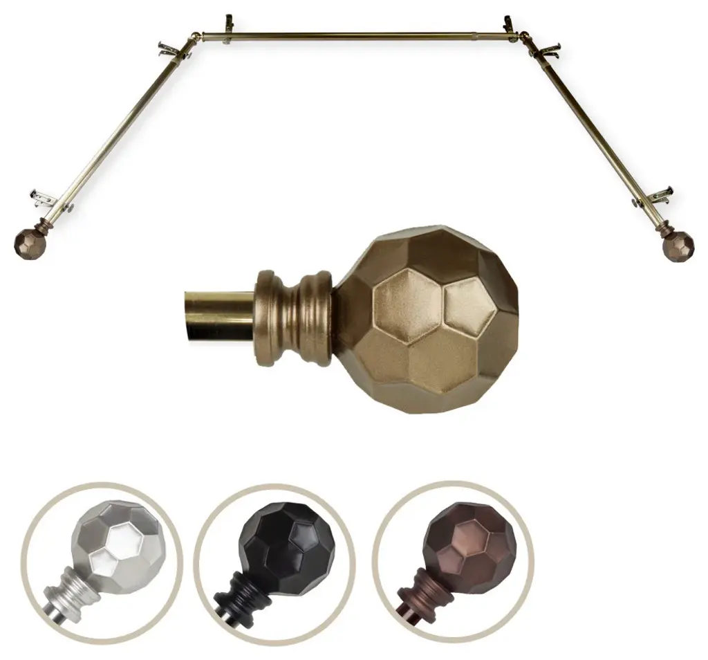 Remi 13/16" Bay Window Curtain Rod, Antique Brass