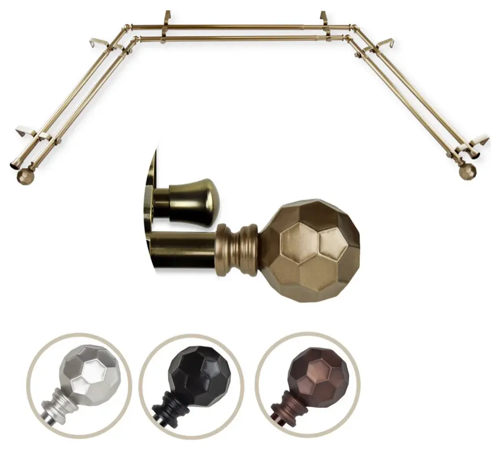 Remi 13/16" Bay Window Double Curtain Rod, Antique Brass