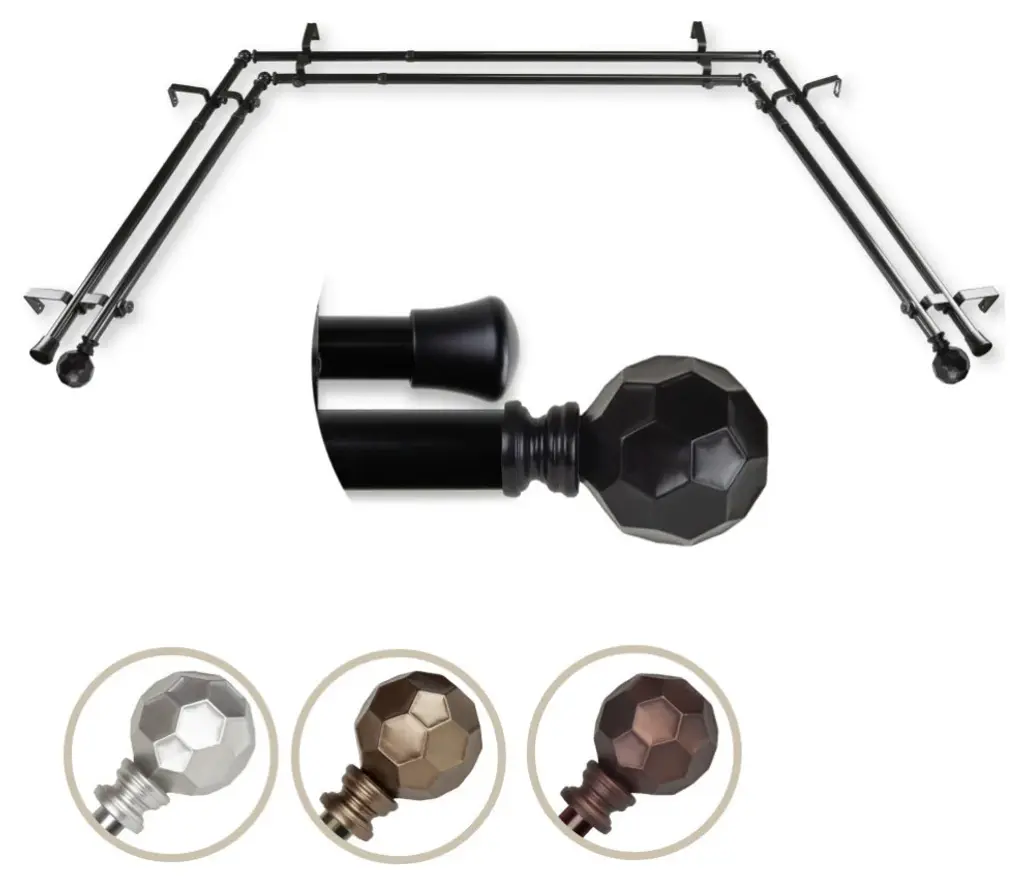 Remi 13/16" Bay Window Double Curtain Rod, Black