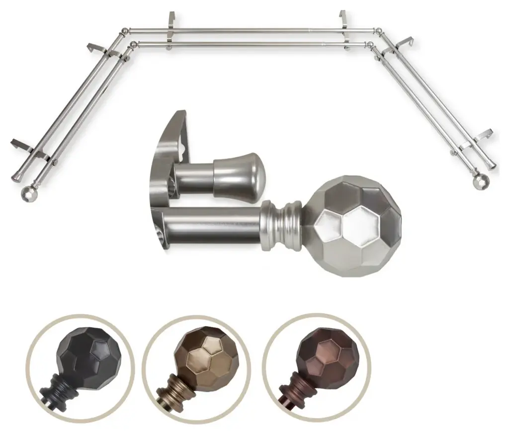 Remi 13/16" Bay Window Double Curtain Rod, Satin Nickel