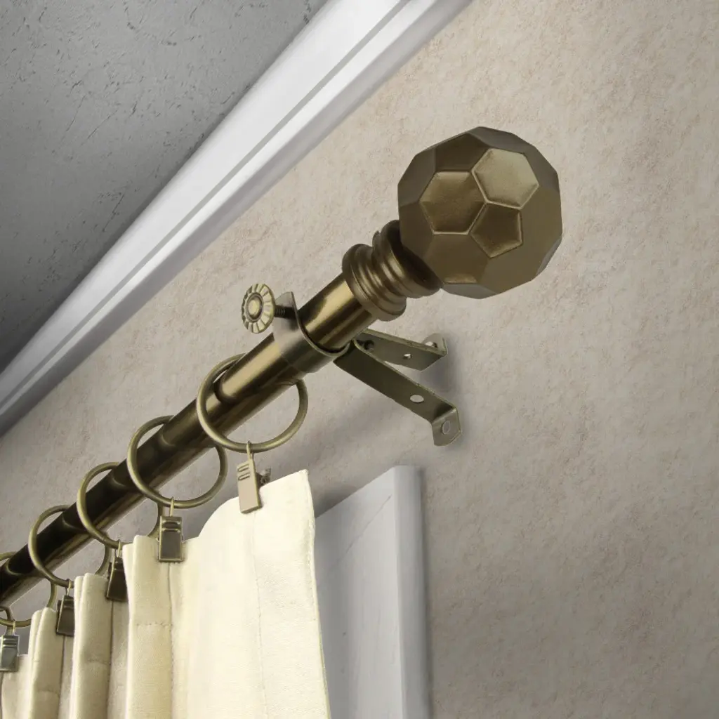 Remi 13/16" Diameter Curtain Rod, Antique Brass, 120-170"