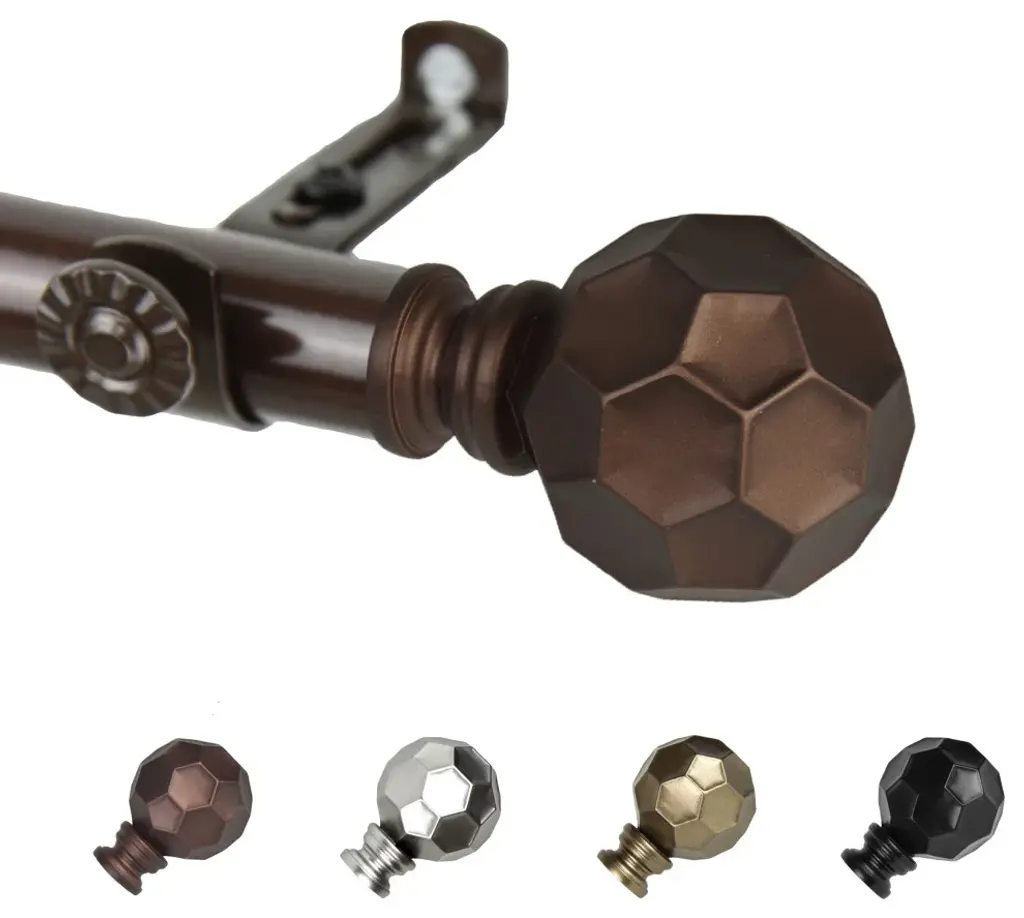 Add a sophisticated touch to your window treatment with a 13/16" diameter curtain rod set. Made of high quality steel rods and resin finials. Includes one 66-120 inches telescoping steel pole 3 brackets and 2 finialsProjection: 2.875"Finial measurement: 3" W x 2.25" H x 2.25" DRod Diameter: 13/16 inch