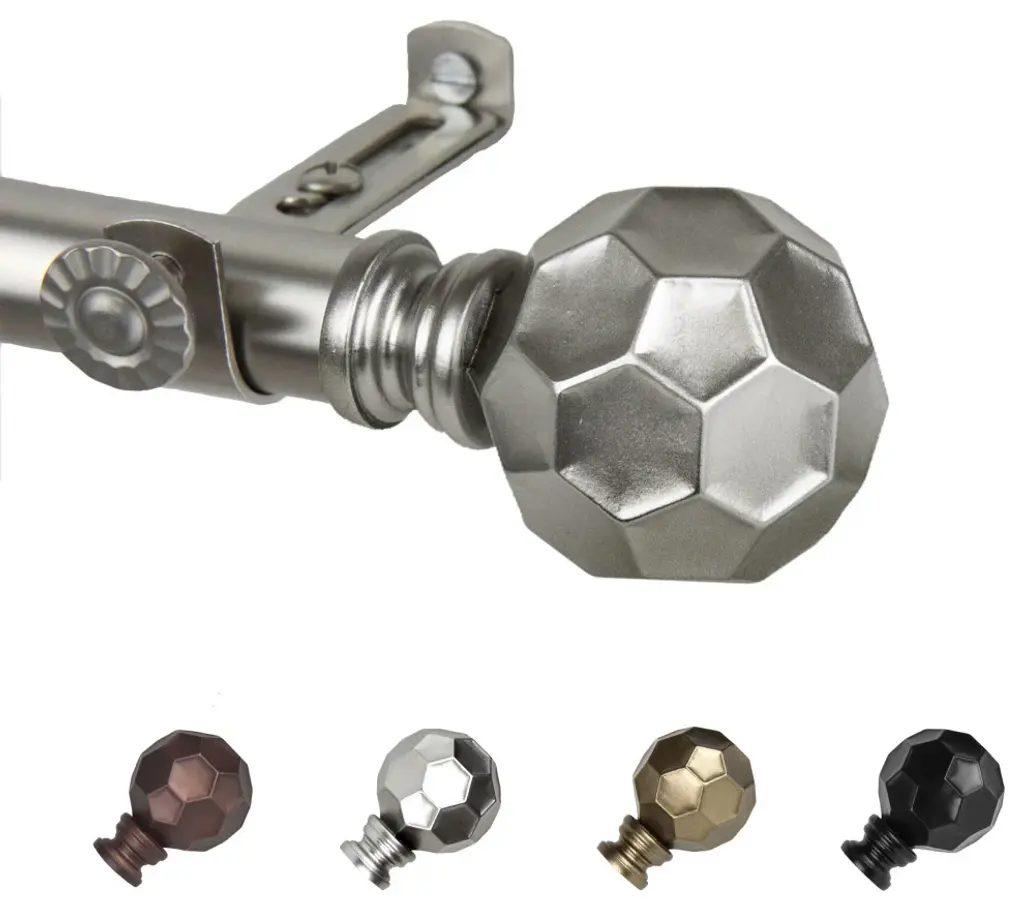 Add a sophisticated touch to your window treatment with a 13/16" diameter curtain rod set. Made of high quality steel rods and resin finials. Includes one 66-120 inches telescoping steel pole 3 brackets and 2 finialsProjection: 2.875"Finial measurement: 3" W x 2.25" H x 2.25" DRod Diameter: 13/16 inch