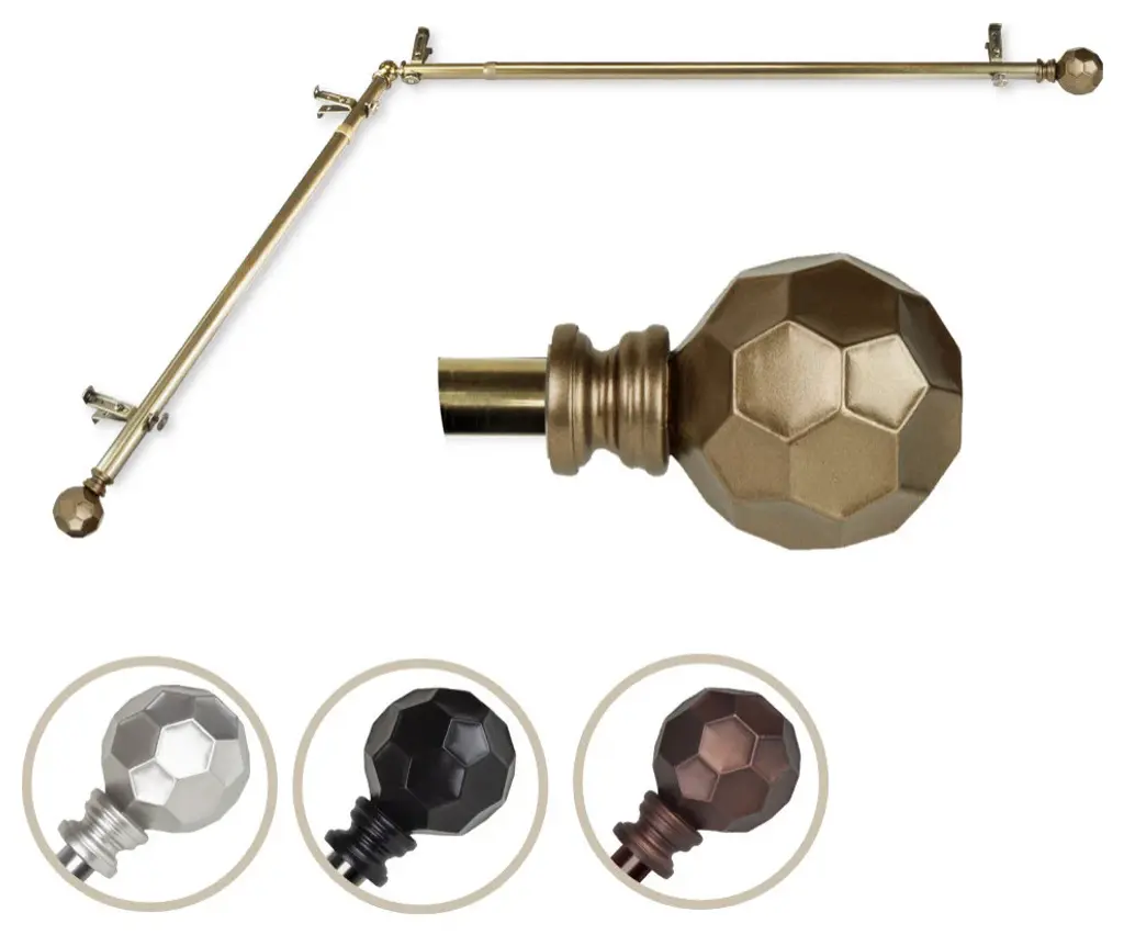 Add a sophisticated touch to your window treatment with a 13/16" diameter corner window curtain rod set. Made of high quality steel rods and resin finials.Includes two 28-48 inches telescoping steel pole 4 brackets and 2 finials.Projection: 2.875"Finial measurement: 3" W x 2.25" H x 2.25" DRod Diameter: 13/16 inch
