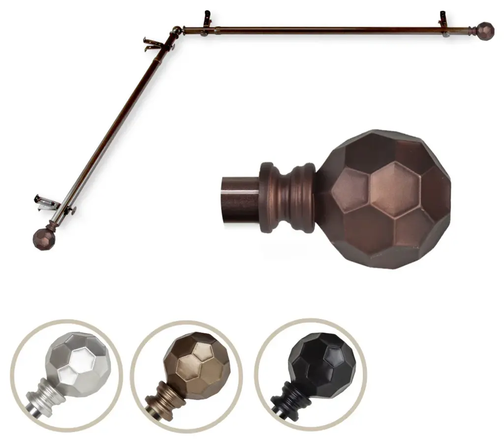 Add a sophisticated touch to your window treatment with a 13/16" diameter corner window curtain rod set. Made of high quality steel rods and resin finials.Includes two 48-84 inches telescoping steel pole 6 brackets and 2 finials.Projection: 2.875"Finial measurement: 3" W x 2.25" H x 2.25" DRod Diameter: 13/16 inch