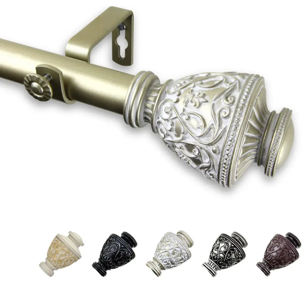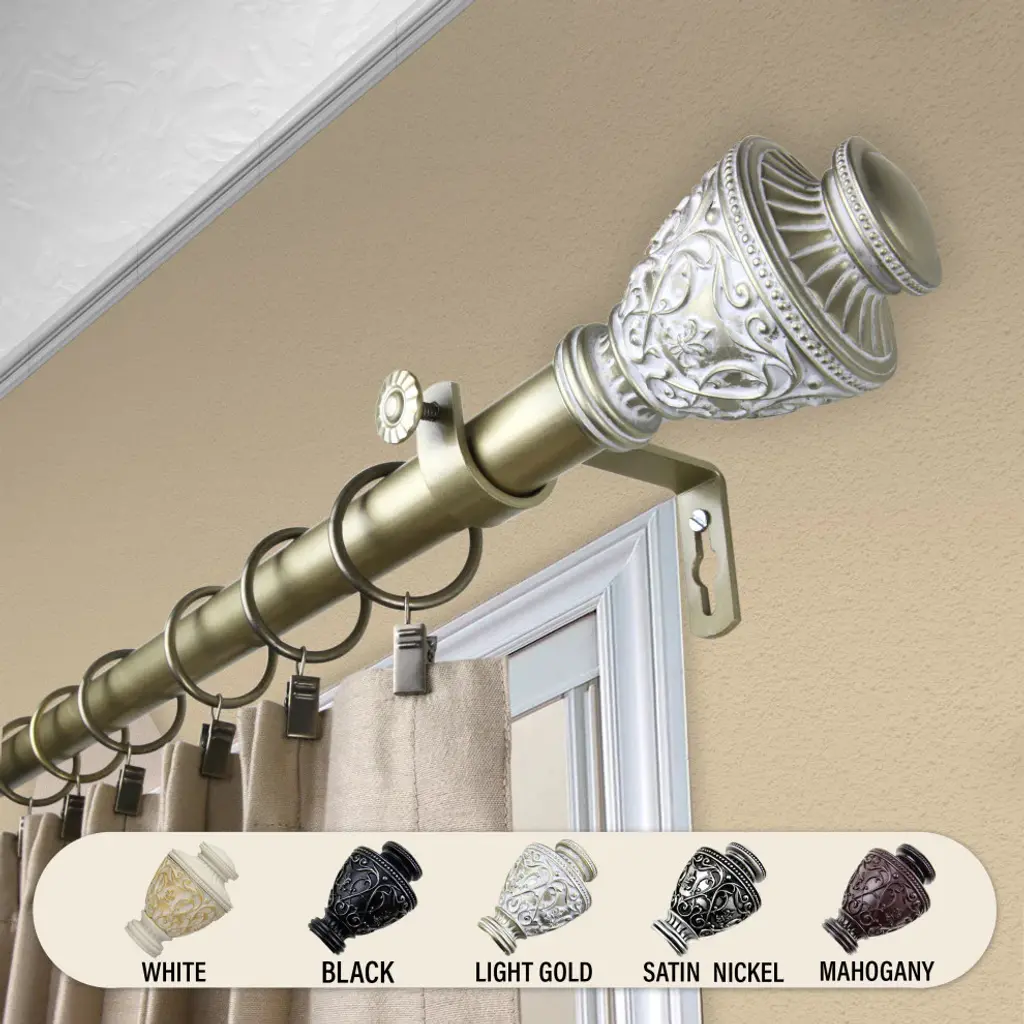 Central Design Products is thrilled to present our top-of-the-line Single Curtain Rods, the ultimate addition to any window treatment. Our high-quality rods are crafted with precision to provide a sleek and modern look to your home decor. Each set includes a single curtain rod, finials, sturdy mounting brackets, and all necessary mounting hardware. The elegant color of our curtain rods adds a touch of sophistication to your space. Upgrade your window treatment with Central Design Products'' Single Curtain Rods today! Includes 1 curtain rod of 1" diameter, finials, mounting brackets, and mounting hardware. Size: 28-48" Projection: 3.625" Rod Diameter: 1" Material: Steel