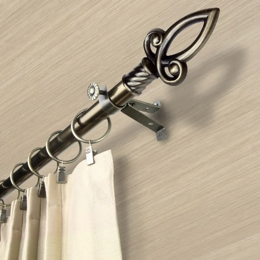 Introduce an elegant touch to your window treatment with this beautiful 13/16" diameter curtain rod set, made of high quality steel rods. Includes telescoping steel pole, mounting hardware, brackets, and 2 finials Projection: 2.875" Finial measurement: 4.625" W x 2.5" H x .25" D