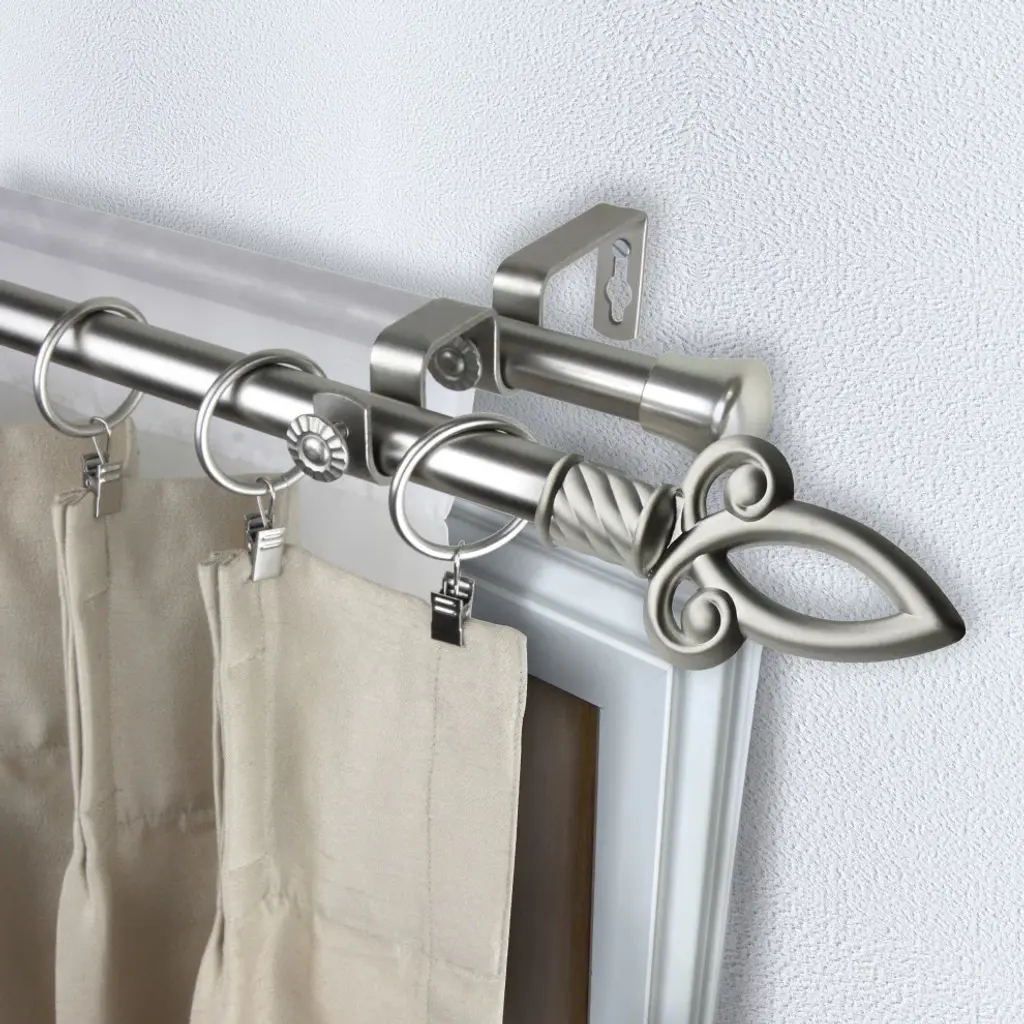 Introduce an elegant touch to your window treatment with this beautiful 13/16" diameter double curtain rod set, made of high quality steel rods. Includes 2 telescoping steel pole, mounting hardware, brackets, and 2 finials Projection: 2.875" Finial measurement: 4.625" W x 2.5" H x .25" D