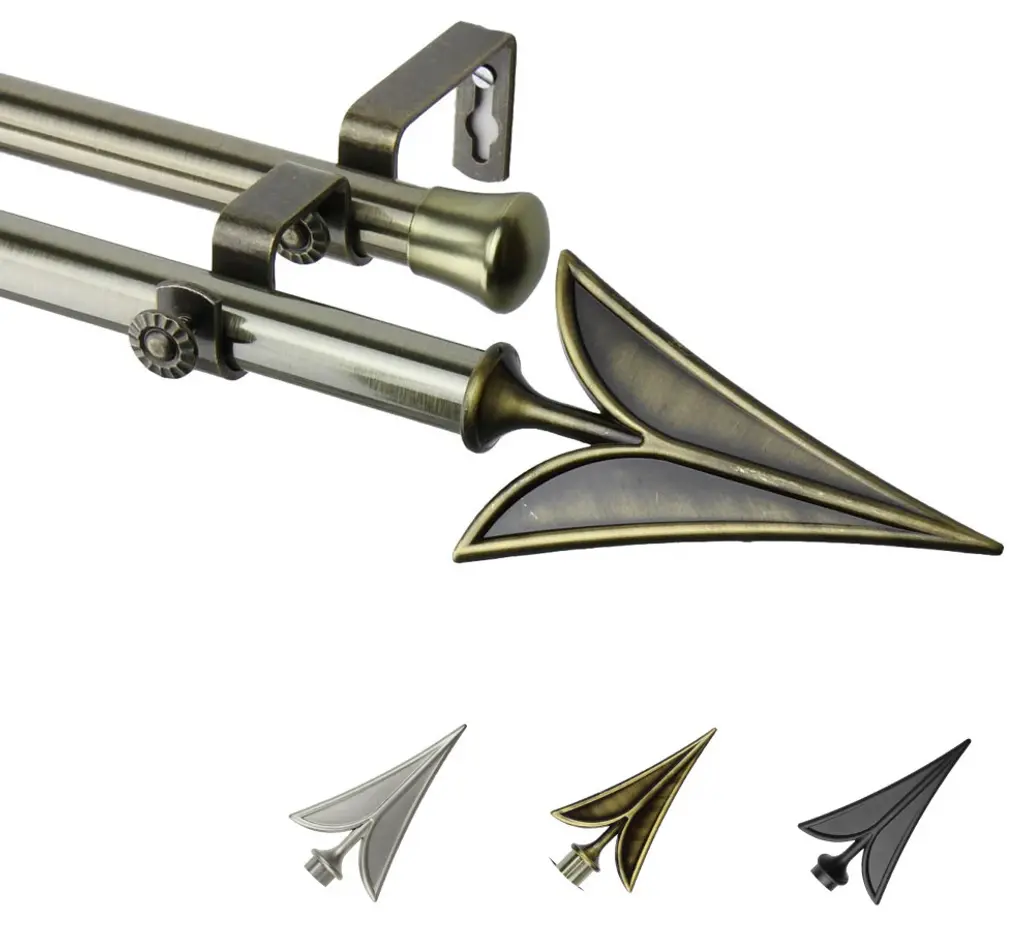 Spear 13/16" Diameter Curtain Rod, Antique Brass, 18-28"