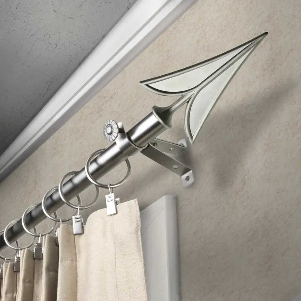 Introduce an elegant touch to your window treatment with this beautiful 13/16" diameter curtain rod set, made of high quality steel rods. Includes telescoping steel pole, mounting hardware, brackets, and 2 finials Projection: 2.875" Finial measurement: 5" W x 3" H x .188" D