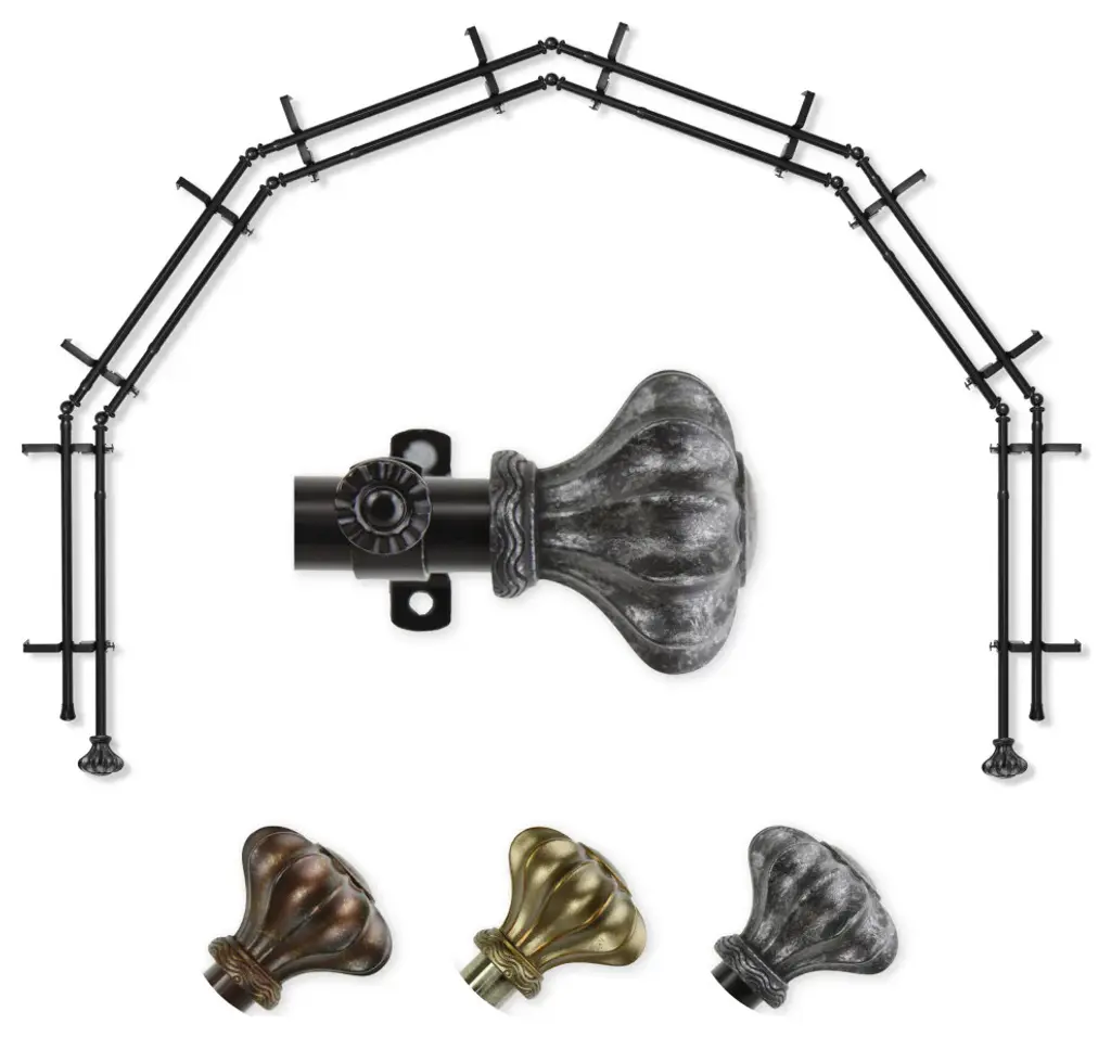 Central Design Products presents the perfect enhancement to your window treatment with high-end quality 5-Sided Double Bay Curtain Rods, Sprout edition. Effortlessly style your 5 sided window treatment with these Bay Curtain Rods. Designed to add a modern touch for those tricky bay windows. Includes 10 curtain rods of 13/16" diameter, 10 support brackets, 8 corner connectors, and mounting hardware. Projection: 6.375" Clearance: 3.75" Rod Diameter: 13/16" Material: Steel Color: Cocoa