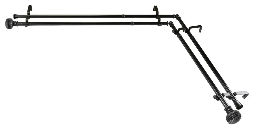 Sprout Corner Window Double 13/16" Curtain Rod, Black, 28-48"