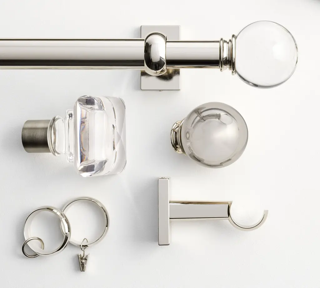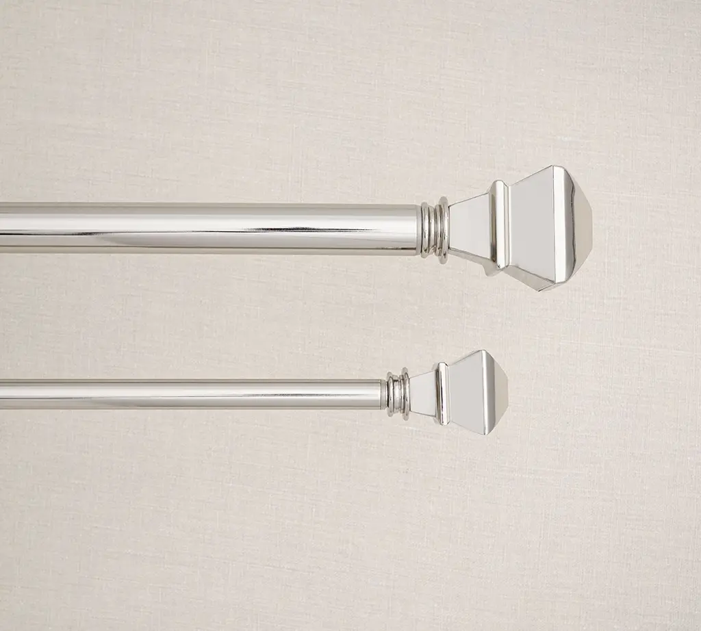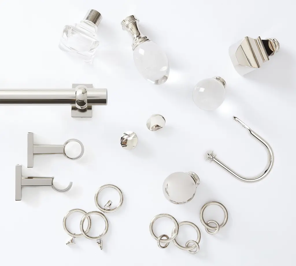 Bright and bold, our Polished Nickel Curtain Hardware Collection accessorizes your windows in fine style. The shiny silvery finish and straightforward style of each piece is made to build a cohesive look in a room or throughout your entire home.