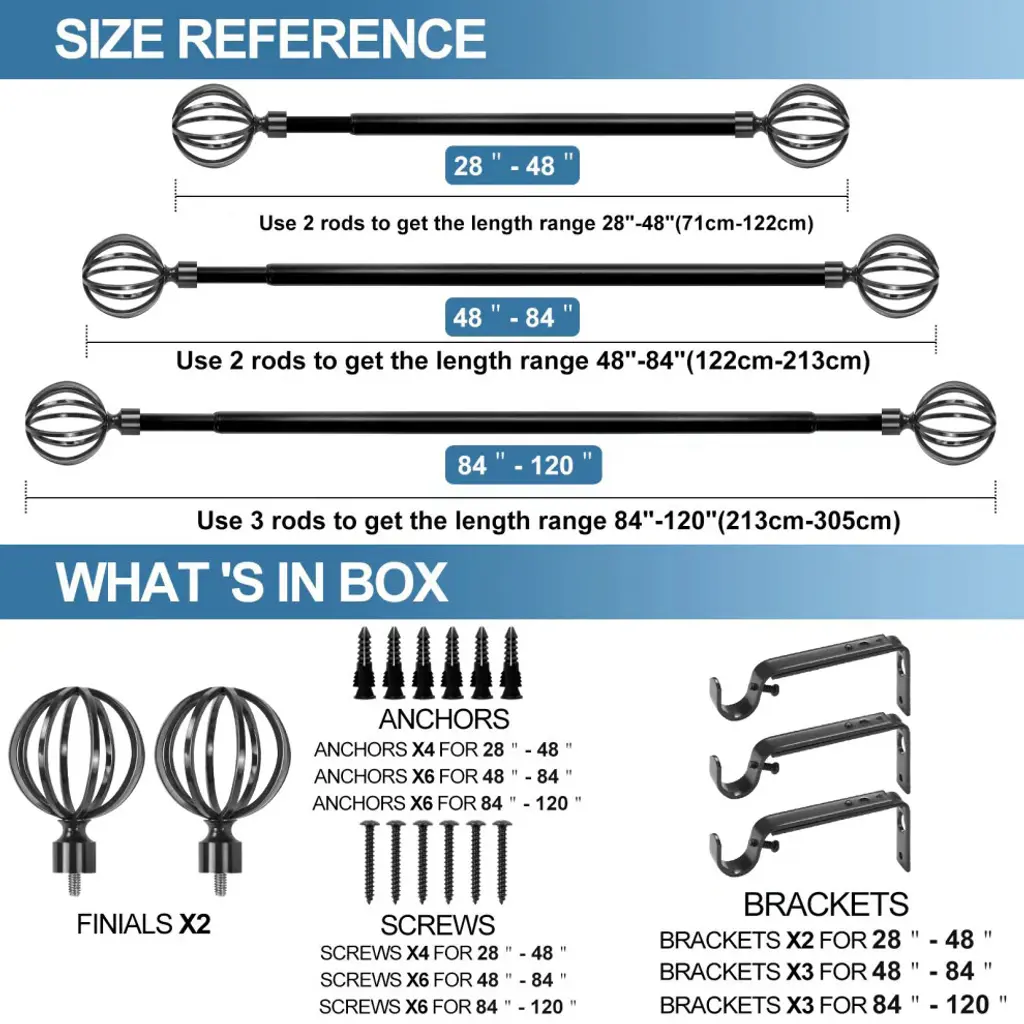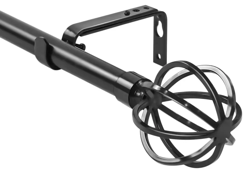 Steel Cage Ball Curtain Rod, Black, 48"-84"