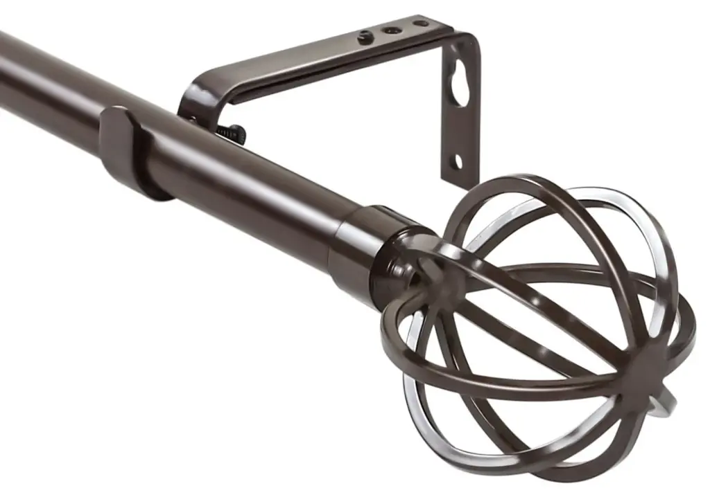 Steel Cage Ball Curtain Rod, Bronze, 48"-84"