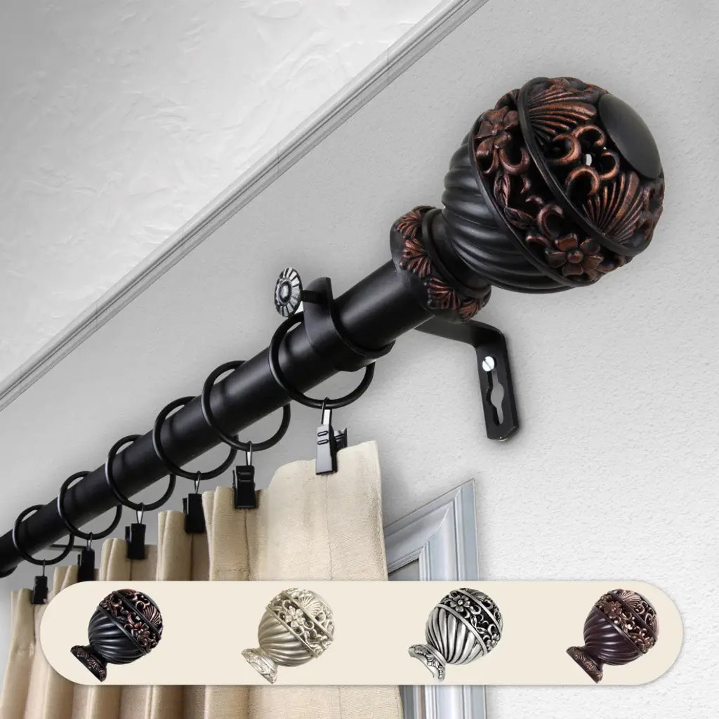 Central Design Products is thrilled to present our top-of-the-line Single Curtain Rods, the ultimate addition to any window treatment. Our high-quality rods are crafted with precision to provide a sleek and modern look to your home decor. Each set includes a single curtain rod, finials, sturdy mounting brackets, and all necessary mounting hardware. The elegant color of our curtain rods adds a touch of sophistication to your space. Upgrade your window treatment with Central Design Products'' Single Curtain Rods today! Includes 1 curtain rod of 1" diameter, finials, mounting brackets, and mounting hardware. Size: 120-170" Projection: 3.625" Rod Diameter: 1" Material: Steel