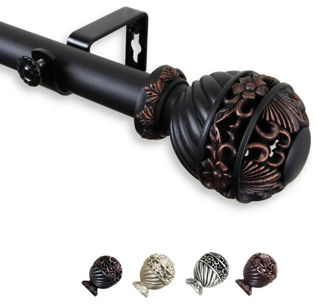 Central Design Products is thrilled to present our top-of-the-line Single Curtain Rods, the ultimate addition to any window treatment. Our high-quality rods are crafted with precision to provide a sleek and modern look to your home decor. Each set includes a single curtain rod, finials, sturdy mounting brackets, and all necessary mounting hardware. The elegant color of our curtain rods adds a touch of sophistication to your space. Upgrade your window treatment with Central Design Products'' Single Curtain Rods today! Includes 1 curtain rod of 1" diameter, finials, mounting brackets, and mounting hardware. Size: 160-240" Projection: 3.625" Rod Diameter: 1" Material: Steel