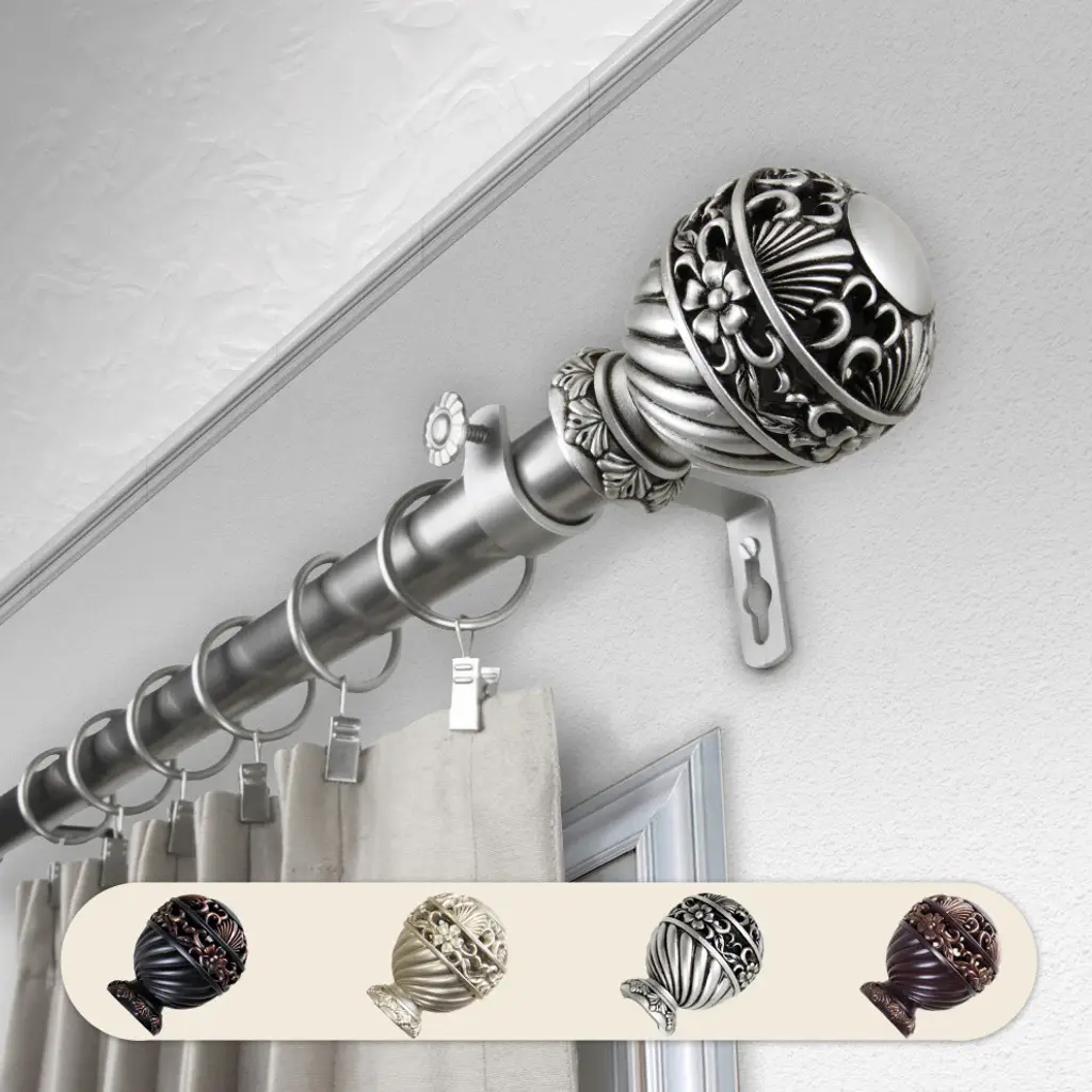 Central Design Products is thrilled to present our top-of-the-line Single Curtain Rods, the ultimate addition to any window treatment. Our high-quality rods are crafted with precision to provide a sleek and modern look to your home decor. Each set includes a single curtain rod, finials, sturdy mounting brackets, and all necessary mounting hardware. The elegant color of our curtain rods adds a touch of sophistication to your space. Upgrade your window treatment with Central Design Products'' Single Curtain Rods today! Includes 1 curtain rod of 1" diameter, finials, mounting brackets, and mounting hardware. Size: 48-84" Projection: 3.625" Rod Diameter: 1" Material: Steel