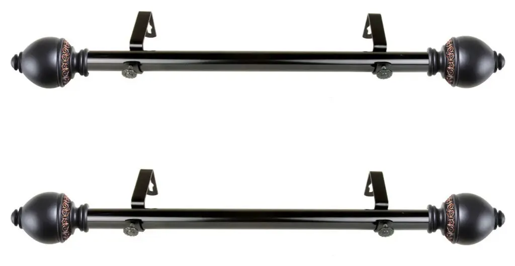 Central Design Products is thrilled to present our side curtain rods, which will add alluring style and refined touch to your window treatment and home decor. Add a nice touch to each side of your beautiful window to apply a modern and unique look in your living space. Includes two 1" diameter telescoping rods, four finials, four side mount brackets and mounting hardware. Size: 12-20" Projection: 3.625" Steel Rod