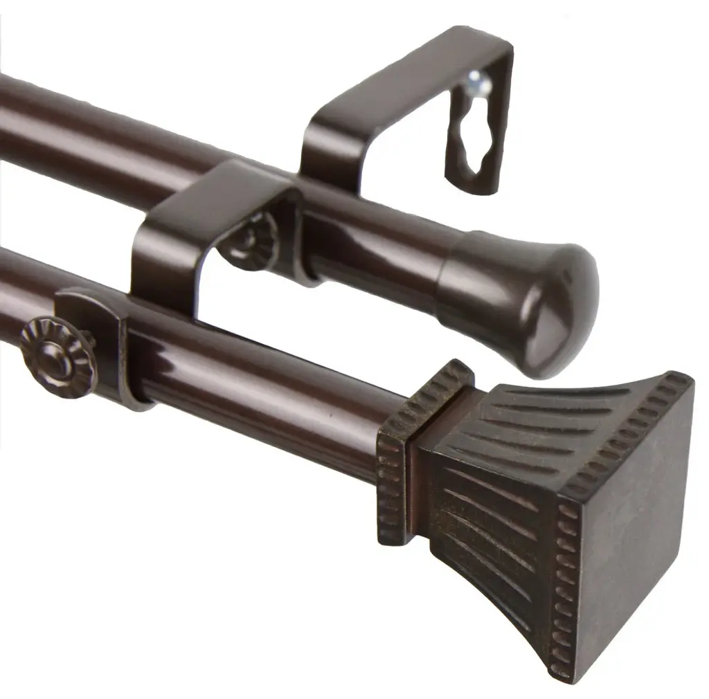 Studded 1" Double Curtain Rod, Black, Bronze, 120"-170"