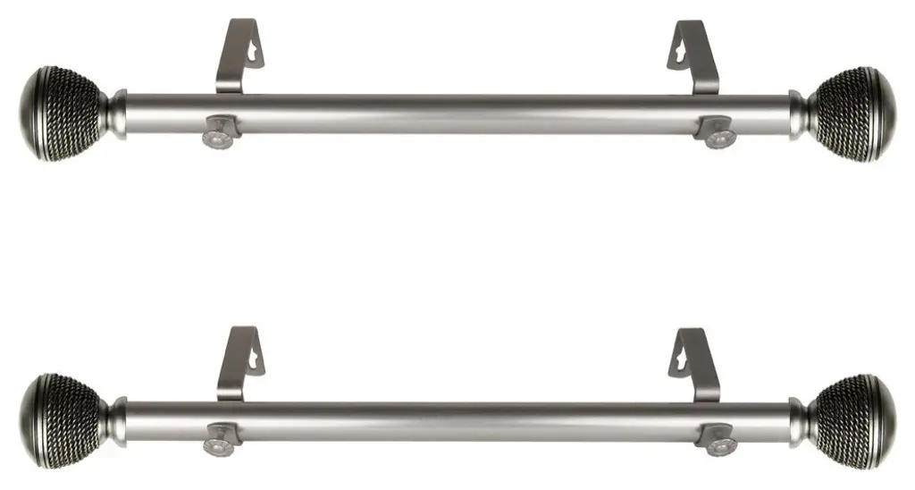 This side mount curtain rod will add alluring style and refined touch to your window treatment and home decor.Includes two 1" diameter telescoping 12-20 inches rod, four finials, four side mount brackets and mounting hardware.Finial Measurement: 2-1/2"W x 2-1/4"H x 2"D.Bracket Projection: 3.625 inches.Installation instructions included.Steel Rod and Resin Finials