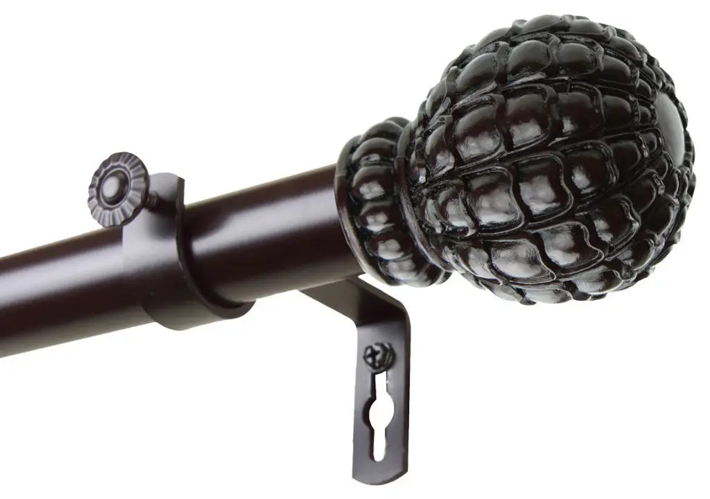 Decorate your window with this Rod Desyne Supreme Curtain Rod. This rod is made of solid steel pole while lends a sophiscated touch and finished appeal to your window treatment, regardless of room or drapery style. Features:Includes one 1 inch diameter high quality steel telescoping pole, extends 48-84 inch, 3 brackets and 2 finialsEach Supreme finial measures W 2-5/8 inches x H 2-1/4 inches x D 2-1/4 inchesProjection: 3.625"