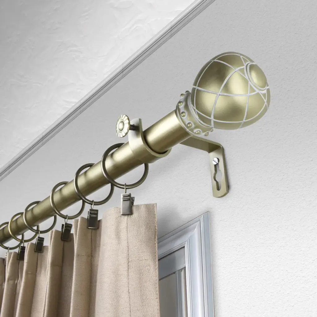 Decorate your window with this Rod Desyne Supreme Curtain Rod. This rod is made of solid steel pole while lends a sophiscated touch and finished appeal to your window treatment, regardless of room or drapery style. Features:Includes one 1 inch diameter high quality steel telescoping pole, extends 28-48 inch, 2 brackets and 2 finialsEach Supreme finial measures W 2-5/8 inches x H 2-1/4 inches x D 2-1/4 inchesProjection: 3.625"