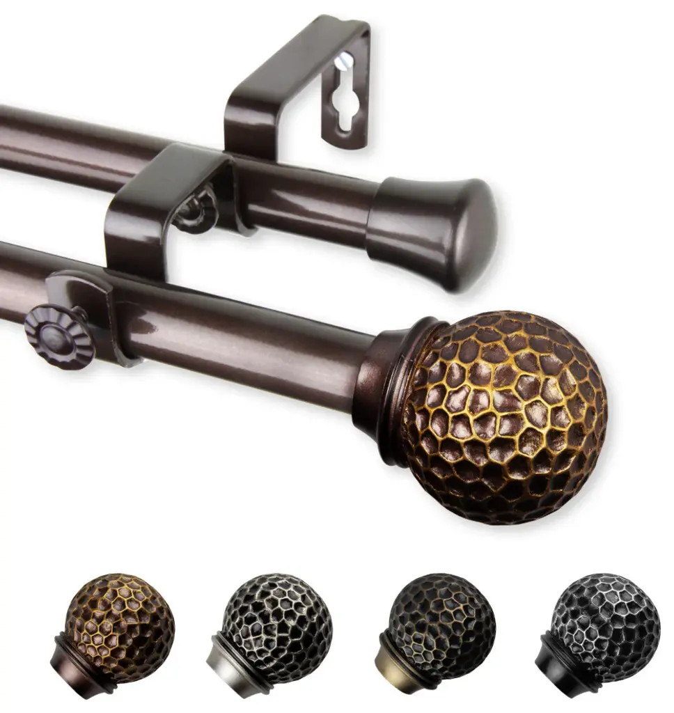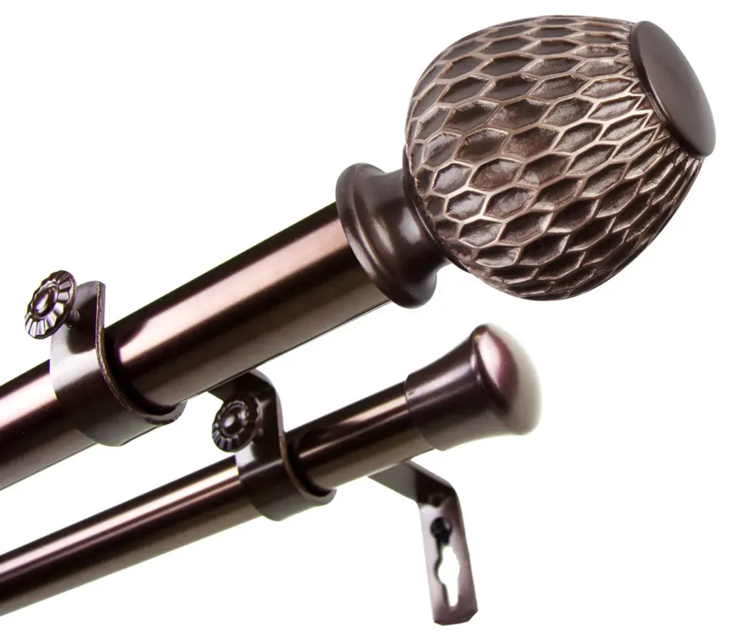 Central Design Products is thrilled to present our top-of-the-line Double Curtain Rods, the ultimate addition to any window treatment. Our high-quality rods are crafted with precision to provide a sleek and modern look to your home decor. Each set includes a double curtain rod, finials, sturdy mounting brackets, and all necessary mounting hardware. The elegant color of our curtain rods adds a touch of sophistication to your space. Upgrade your window treatment with Central Design Products'' Double Curtain Rods today! Includes 1 curtain rod of 1" diameter, one curtain rod of 13/16" diameter, finials, endcaps, mounting brackets, and mounting hardware. Size: 160-240" Projection: 6.75" Front Rod Diameter: 1" / Back Rod Diameter: 13/16" Material: Steel
