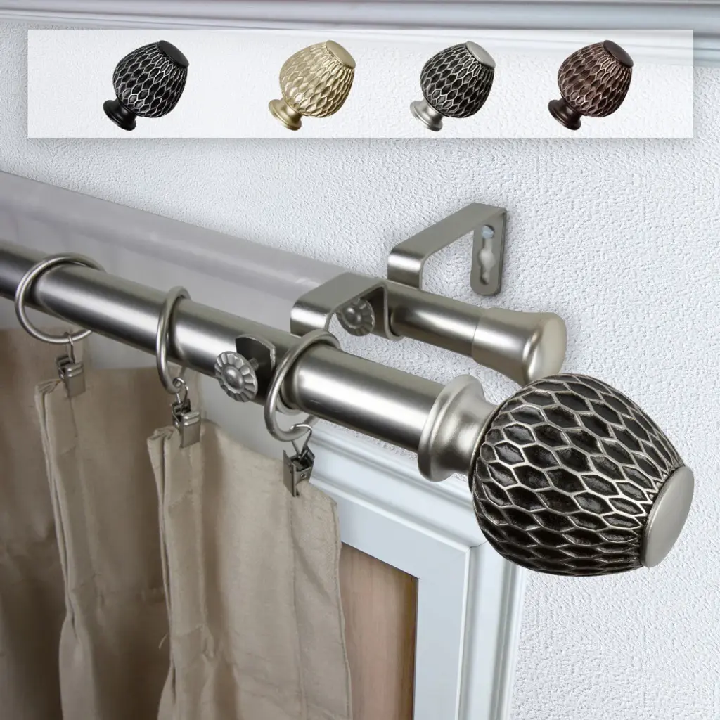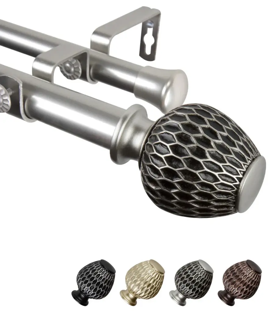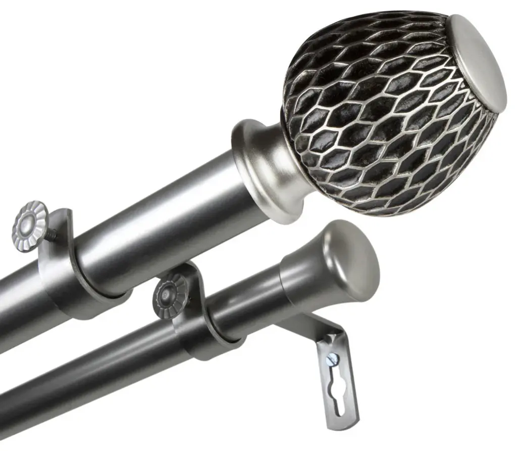 Central Design Products is thrilled to present our top-of-the-line Double Curtain Rods, the ultimate addition to any window treatment. Our high-quality rods are crafted with precision to provide a sleek and modern look to your home decor. Each set includes a double curtain rod, finials, sturdy mounting brackets, and all necessary mounting hardware. The elegant color of our curtain rods adds a touch of sophistication to your space. Upgrade your window treatment with Central Design Products'' Double Curtain Rods today! Includes 1 curtain rod of 1" diameter, one curtain rod of 13/16" diameter, finials, endcaps, mounting brackets, and mounting hardware. Size: 160-240" Projection: 6.75" Front Rod Diameter: 1" / Back Rod Diameter: 13/16" Material: Steel