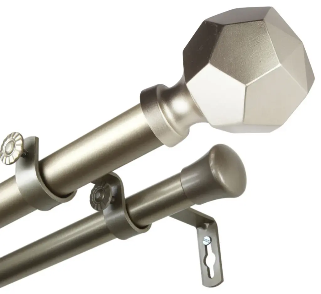 Central Design Products is thrilled to present our top-of-the-line Double Curtain Rods, the ultimate addition to any window treatment. Our high-quality rods are crafted with precision to provide a sleek and modern look to your home decor. Each set includes a double curtain rod, finials, sturdy mounting brackets, and all necessary mounting hardware. The elegant color of our curtain rods adds a touch of sophistication to your space. Upgrade your window treatment with Central Design Products'' Double Curtain Rods today! Includes 1 curtain rod of 1" diameter, one curtain rod of 13/16" diameter, finials, endcaps, mounting brackets, and mounting hardware. Size: 160-240" Projection: 6.75" Front Rod Diameter: 1" / Back Rod Diameter: 13/16" Material: Steel