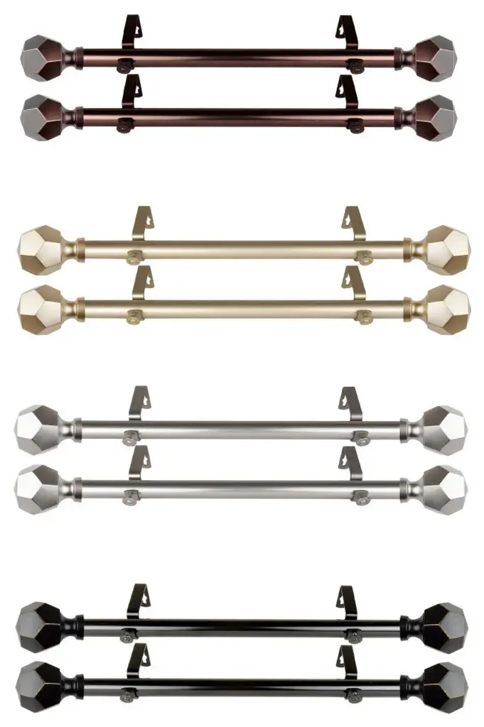 Central Design Products is thrilled to present our side curtain rods, which will add alluring style and refined touch to your window treatment and home decor. Add a nice touch to each side of your beautiful window to apply a modern and unique look in your living space. Includes two 1" diameter telescoping rods, four finials, four side mount brackets and mounting hardware. Size: 12-20" Projection: 3.625" Steel Rod