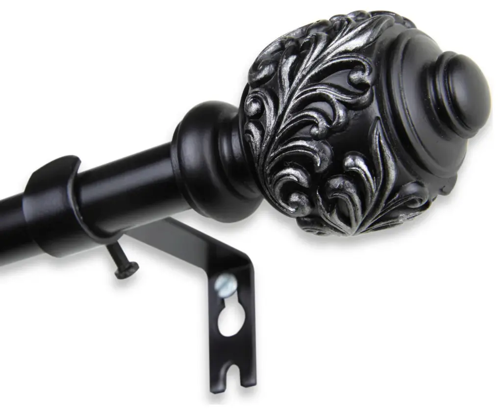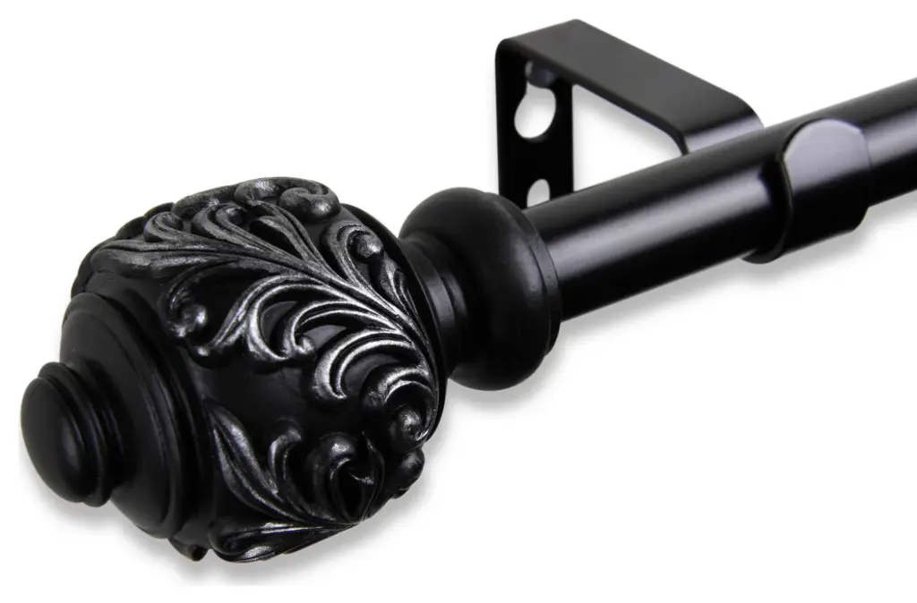 Update your home decor with Rod Desyne Drapery Hardware. This classic curtain rod adds a refined touch and elegant charm to your living area. Complete your home d?cor with matching double rods, holdbacks, and curtain rings.Features:Includes one 5/8 inch diameter high quality steel telescoping pole, extends 28-48 inch, 2 brackets and 2 finialsEach Tilly finial measures W 2-5/8" x H 1-3/4" x D 1-3/4"Projection: 2.75"