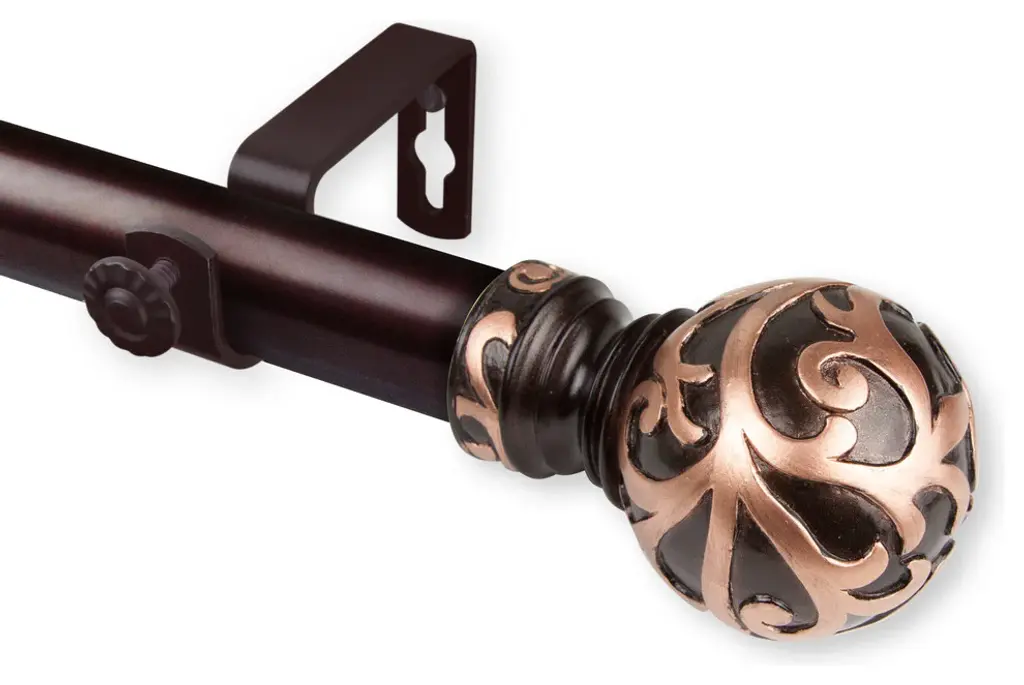 Update your home decor with Rod Desyne Drapery Hardware. This classic curtain rod adds a refined touch and elegant charm to your living area. Complete your home d?cor with matching double rods, holdbacks, and curtain rings.Features:Includes one 5/8 inch diameter high quality steel telescoping pole, extends 48-84 inch, 3 brackets and 2 finialsEach Tilly finial measures W 2-5/8" x H 1-3/4" x D 1-3/4"Projection: 2.75"