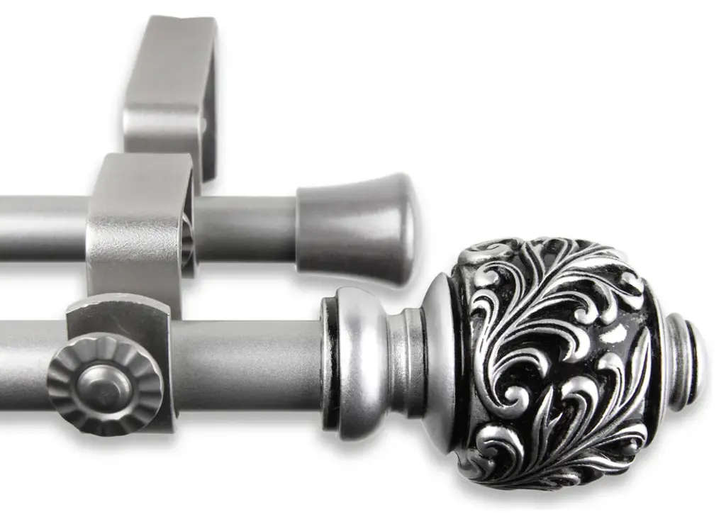 Update your home decor with Rod Desyne Drapery Hardware. This classic double curtain rod adds a refined touch and elegant charm to your living area. Complete your home d?cor with matching single rods, holdbacks, and curtain rings.Features:Includes two 5/8 inch diameter high quality steel telescoping poles, extends 28-48 inch, 2 brackets and 2 finialsEach Tilly finial measures W 2-5/8" x H 1-3/4" x D 1-3/4"Projection: wall to back rod: 3.75", wall to front rod: 6.25"