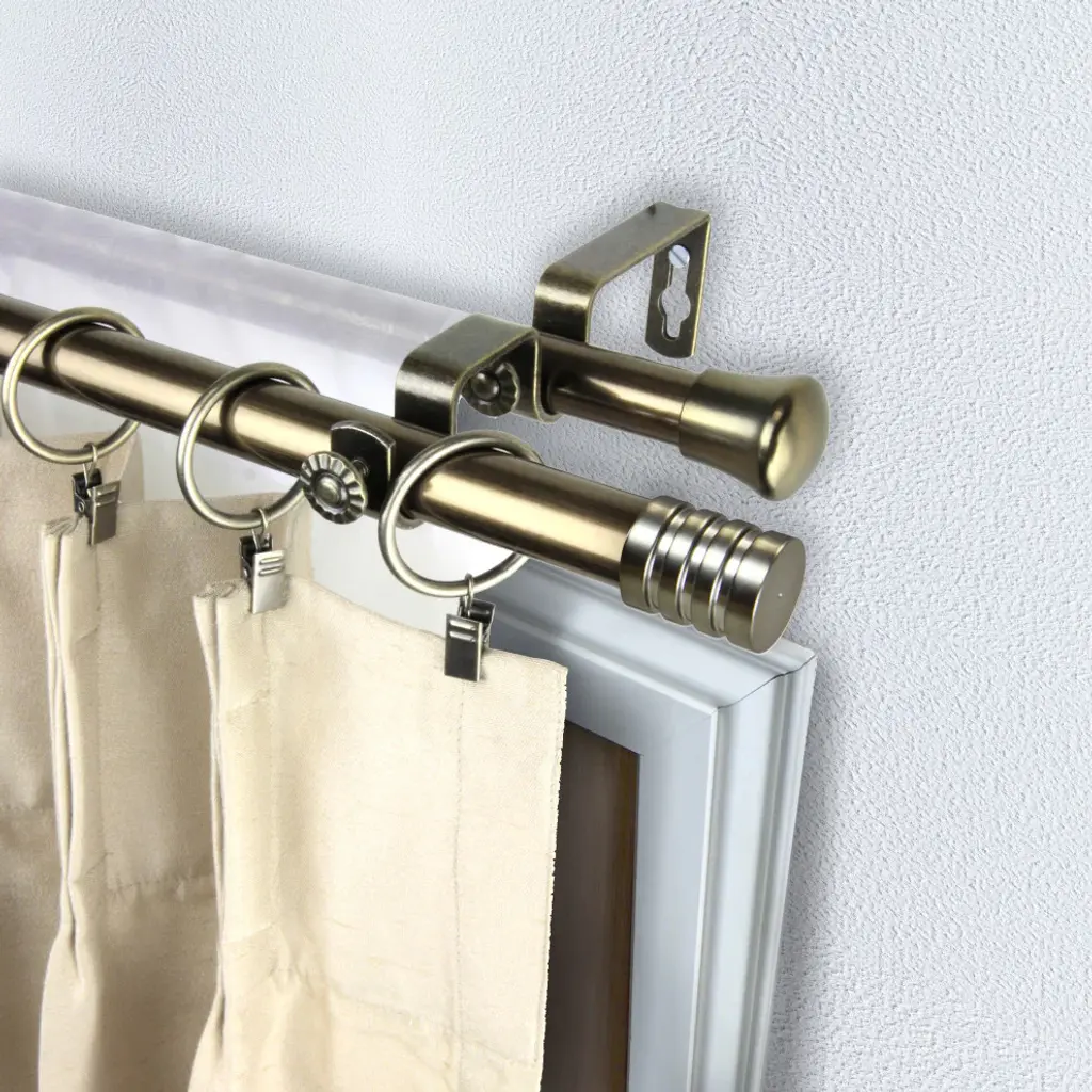 Introduce an elegant touch to your window treatment with this beautiful 13/16" diameter double curtain rod set, made of high quality steel rods. Includes 2 telescoping steel pole, mounting hardware, brackets, and 2 finials Projection: 2.875" Finial measurement: 1.375" W x 1.063" H x 1.063" D