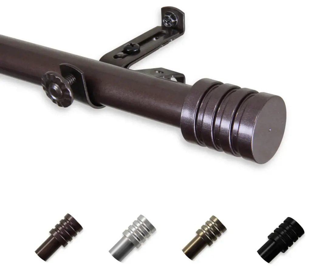 Introduce an elegant touch to your window treatment with this beautiful 13/16" diameter double curtain rod set, made of high quality steel rods. Includes 2 telescoping steel pole, mounting hardware, brackets, and 2 finials Projection: 2.875" Finial measurement: 1.375" W x 1.063" H x 1.063" D