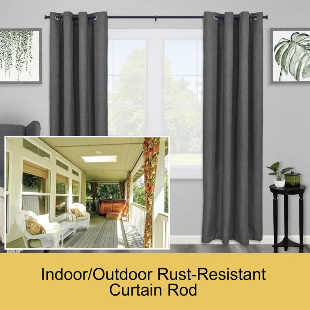 Add style to your home with this curtain single rod. A rust-resistant coating protects this rod from the elements when used outside on porches, patios, pergolas, and decks. This versatile rod is also perfect for indoor spaces such as the family room, dining room, bedroom, or home office. The telescoping rod adjusts to fit your window. The secure hold brackets can be ceiling or wall-mounted, allowing you to customize the look of your space. It is recommended for light, medium, and heavyweight curtains and works well with grommet curtains. Brackets and mounting hardware are included.
