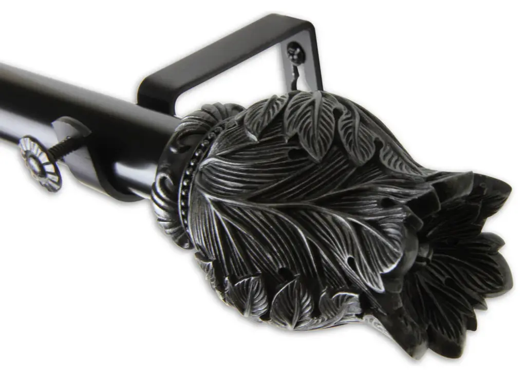 Tulip 1" Curtain Rod, Black, 66"-120"