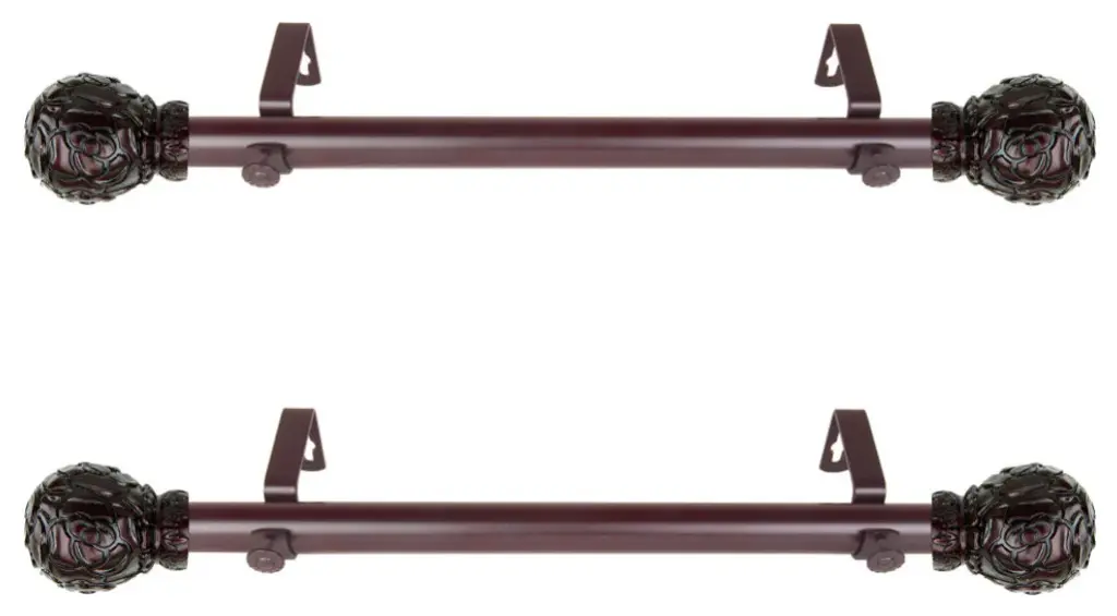 This side mount curtain rod will add alluring style and refined touch to your window treatment and home decor.Includes two 1" diameter telescoping 12-20 inches rod, four finials, four side mount brackets and mounting hardware.Finial Measurement: 3-3/4"W x 2-1/2"H x 2-1/2"D.Bracket Projection: 3.625 inches.Installation instructions included.Steel Rod and Resin Finials