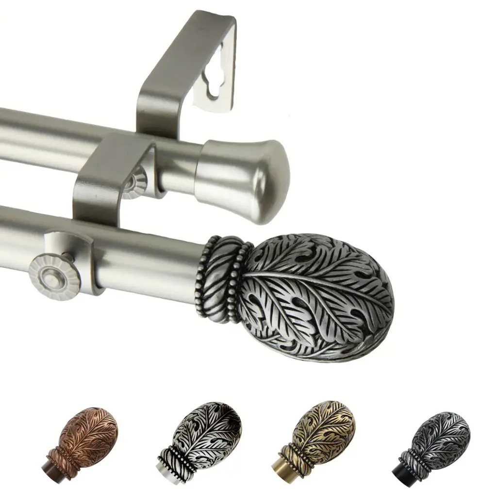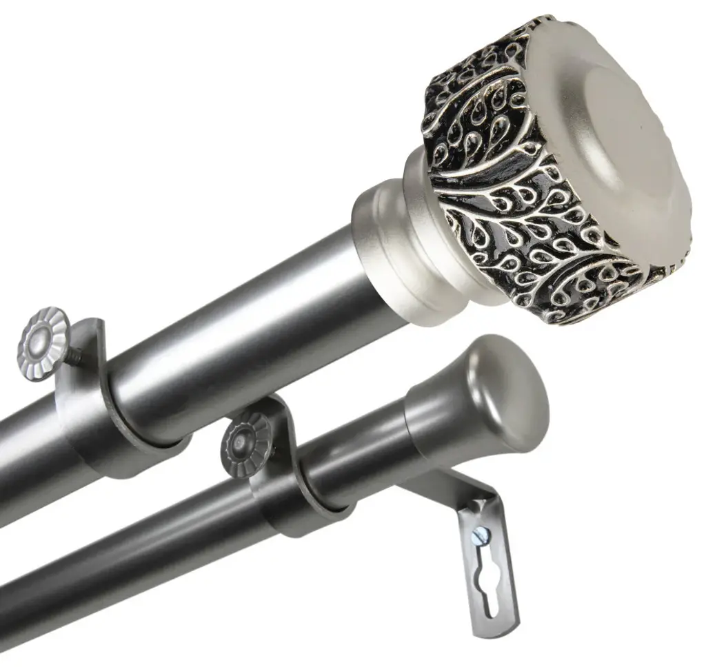 Tulip 1" Double Curtain Rod, Black, Satin Nickel, 66"-120"