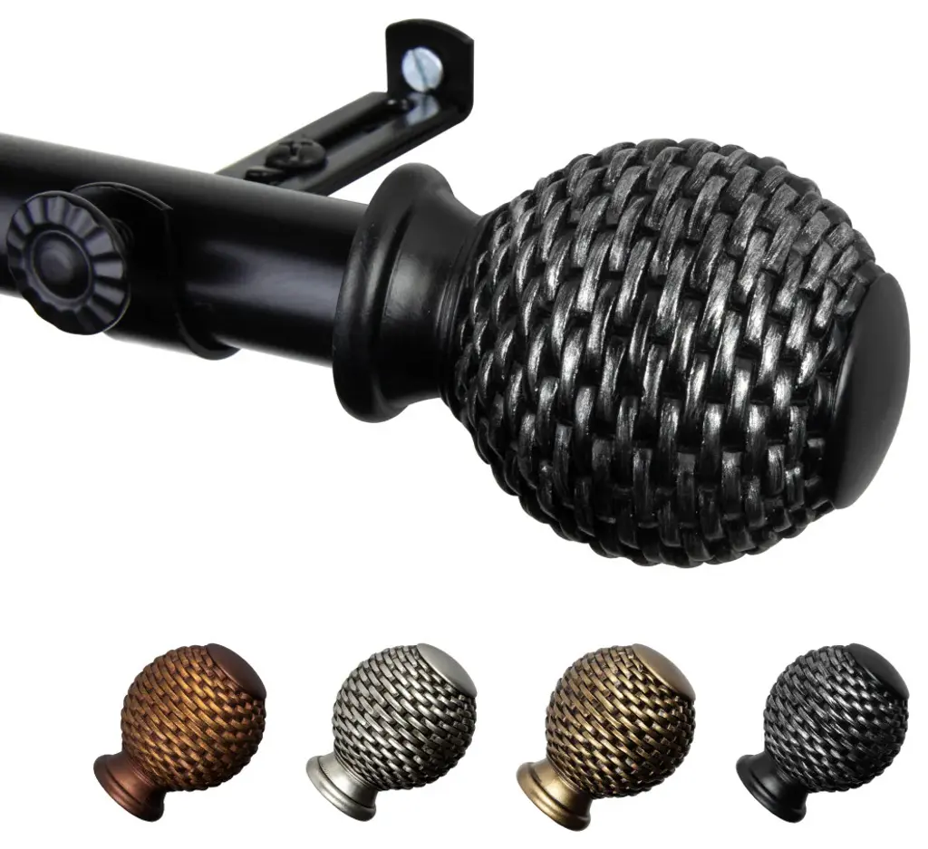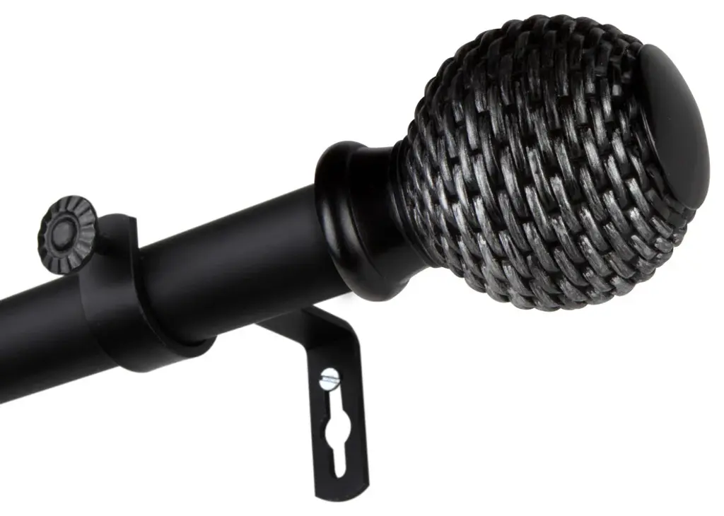 Twine 1" Curtain Rod 28-48", Black, Black, 48-84"